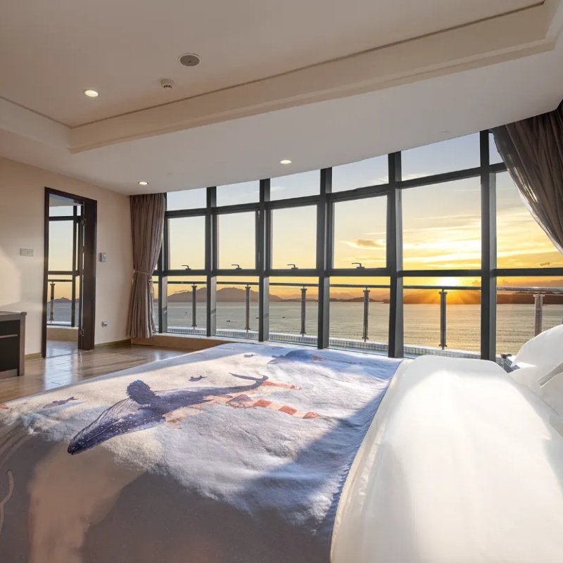 出差途中渴望片刻宁静?酒店提供180°全海景客房,面积70㎡起,配备超大观海阳台,视野开阔无遮挡。无论是清晨处理邮件,还是傍晚远眺落日,都能在私密空间中兼顾工作效率与身心放松,真正实现‘工作在云端,休憩在海边’的理想差旅状态。