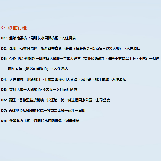 本行程支持1人单独报名参团,特别适合因公出差后希望顺道度假的商务人士。无论您是从上海、北京、广州等一线城市出发,还是从南京、长沙等新一线枢纽城市启程,均可便捷衔接云南昆明、大理、丽江、香格里拉的8天7晚深度游。无需等待拼团满员,节省时间成本,让差旅与休闲无缝切换,高效又惬意。