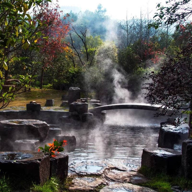 温泉园区内设有沿溪区、云顶区、伴山区及水疗区等各类汤池58余个