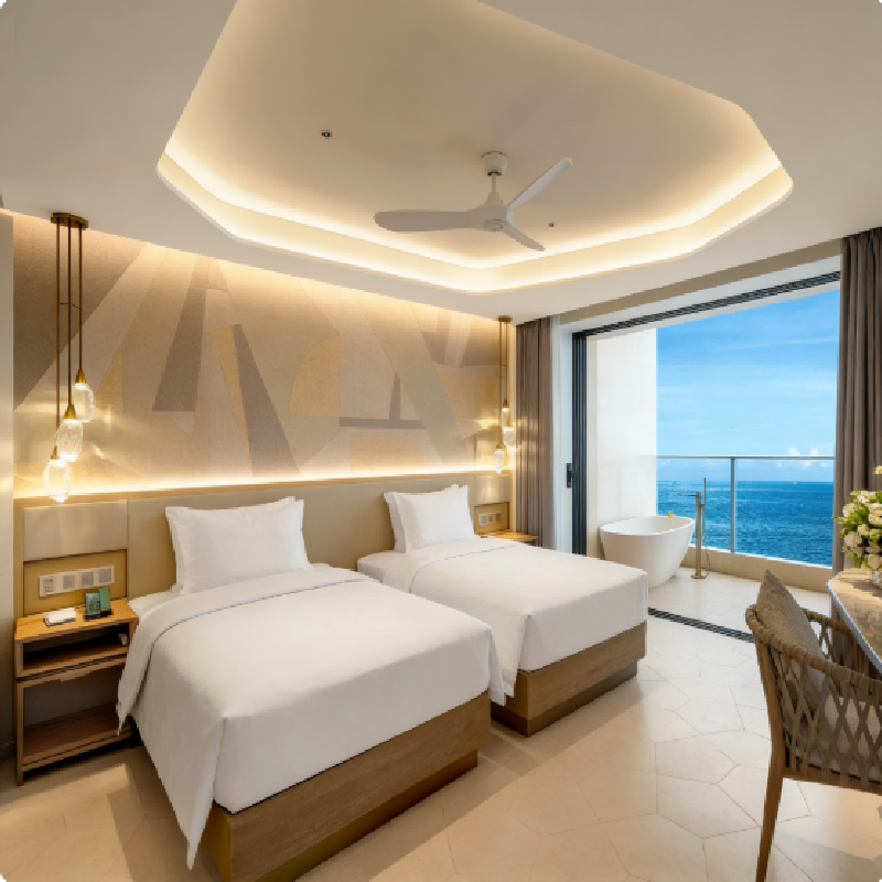 日出·盐晶酒店的海景套房配备高速网络与舒适书桌区域,窗外即是碧海蓝天。对于需远程办公或处理邮件的差旅者,这样的环境既能保持专注,又能缓解视觉疲劳。研究表明,自然景观有助于提升创造力与决策力,让您的差旅工作事半功倍。