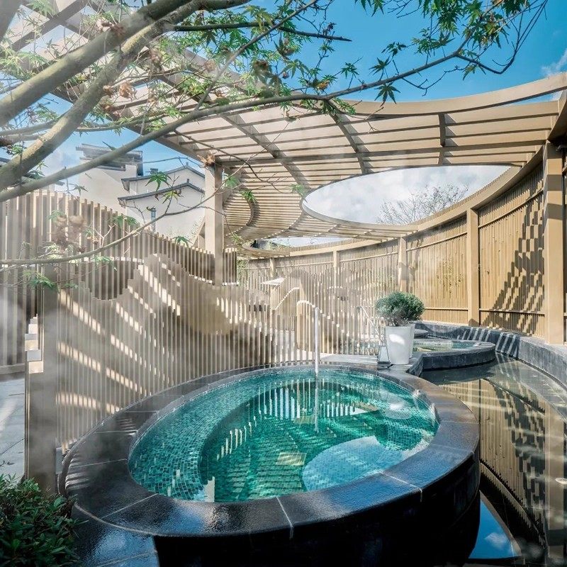 酒店融合日式温泉理念与中式山居美学,打造独特的康养空间。差旅人士可在泡汤过程中感受东方慢生活哲学,在短时间内脱离快节奏工作状态。这种文化沉浸式体验,不仅舒缓身体,更滋养心灵,让短暂的停留成为一次精神充电的契机。