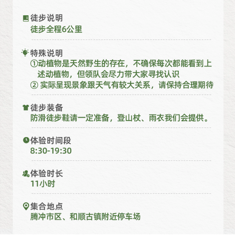 对于经常出差的商务人士而言,时间紧凑、行程不确定是常态。本产品支持“1人可订”,无需拼团等待,极大提升了差旅期间安排短途度假的灵活性。无论您是独自出差至保山,还是临时决定利用周末放松身心,只需提前预订,即可在繁忙工作之余无缝衔接一场说走就走的高黎贡山森林徒步之旅,高效利用碎片化时间,兼顾效率与休闲。