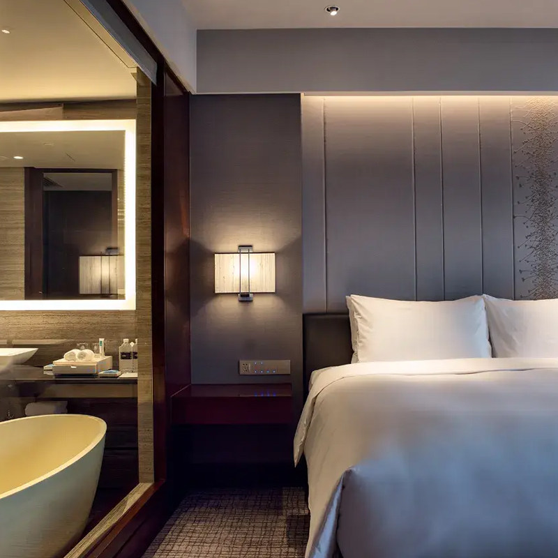 入住行政大床房,现代简约设计融合东方美学细节,配备高速办公区、人体工学座椅及高品质寝具。无论是视频会议、文件处理还是夜间休憩,空间布局均以提升差旅效率与舒适度为核心,让您在快节奏中仍能享受精致住宿体验。