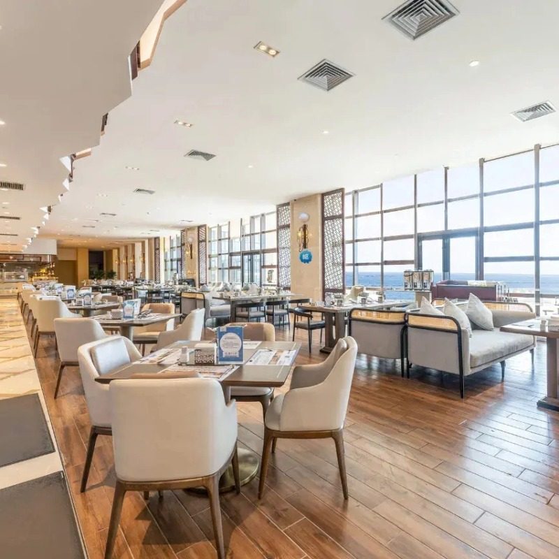 酒店以‘蓝海’为主题,从大堂到客房均融入海洋元素,营造宁静舒缓的氛围。对长期处于高压工作状态的差旅人士而言,这种沉浸式环境有助于快速释放压力、改善睡眠质量。海景大床房更让您在晨起或夜归时,一眼望见辽阔海面,心境豁然开朗,重拾活力迎接新挑战。