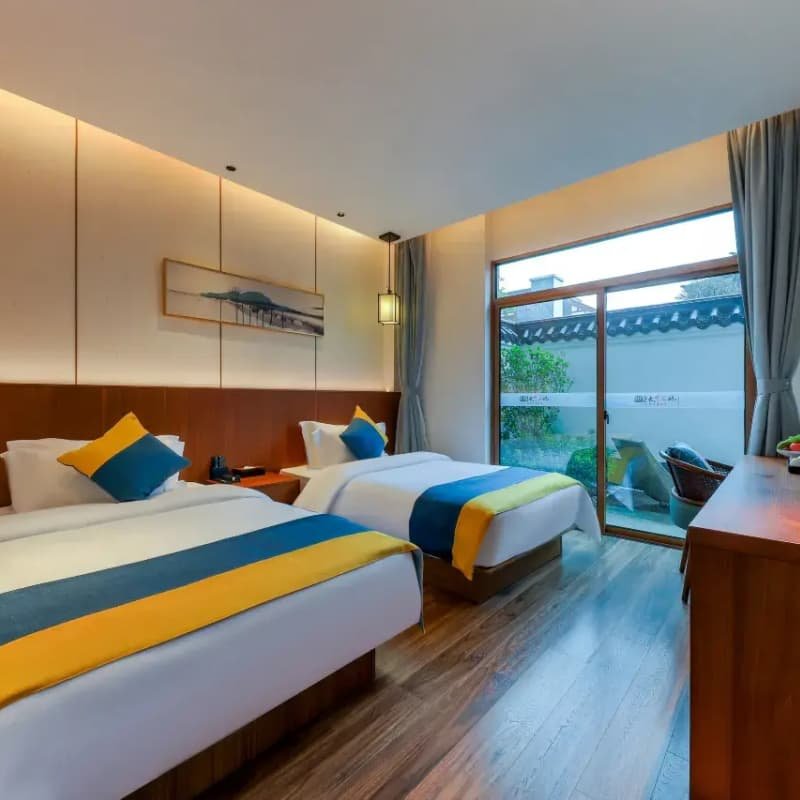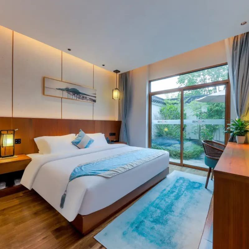 酒店精心营造自然疗愈的度假环境,依山傍水,绿意环绕,远离城市喧嚣。客房采用原木与素雅色调设计,搭配静谧庭院与鸟鸣流水声,帮助差旅人士快速卸下压力。无论是短暂过夜还是周末小憩,都能在此获得深度放松,以更饱满的状态回归工作与生活。
