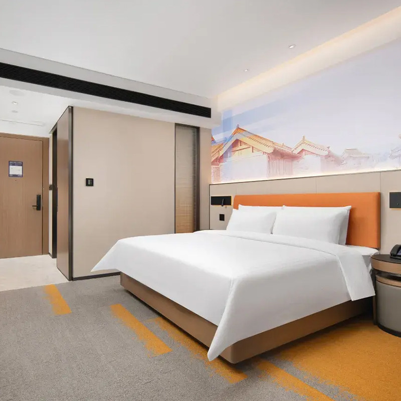 天外村希尔顿欢朋酒店占据绝佳C位,部分高级房型推窗即见泰山雄姿,白天可观云海翻腾,夜晚可赏泰山大型灯光秀。对差旅人士而言,这不仅是一次住宿,更是一场沉浸式视觉盛宴。结束一天会议或登山后,在房间内即可放松身心、远眺山景,无需额外奔波,真正实现“住得近、看得美、歇得好”的差旅理想状态。