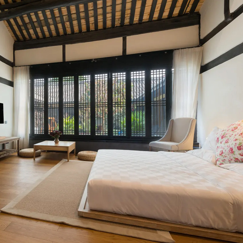 花间堂·阆苑作为知名设计酒店品牌,以文艺清新风格营造静谧疗愈空间。木质结构、庭院天井、素雅布艺等细节,有效缓解差旅带来的疲劳与焦虑。对于需要在紧张工作后快速恢复状态的商务人士,这里不仅是落脚点,更是心灵休憩站,助力后续高效工作。