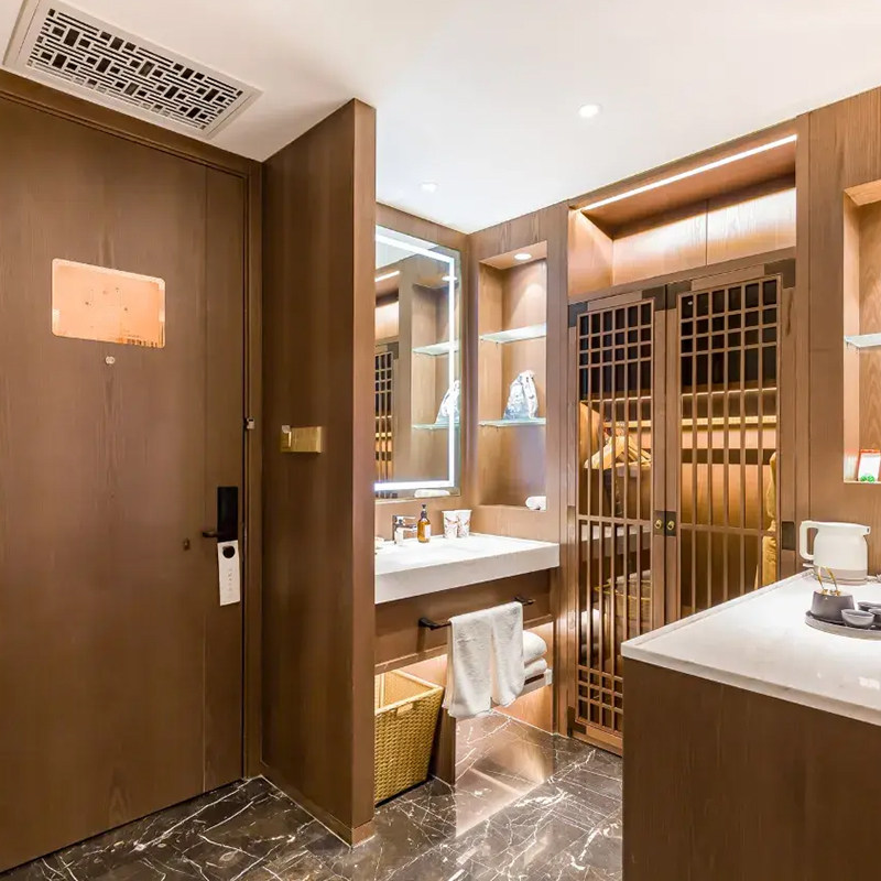 酒店以《老残游记》为设计灵感,长廊悬挂名家书法作品,庭院设置曲水流觞茶席,营造出浓厚的文人雅集氛围。对于需要头脑风暴或创意工作的差旅人士,这样的环境不仅能舒缓压力,更能激发灵感。在茶香墨韵中处理邮件或召开小型会议,效率与格调兼得。