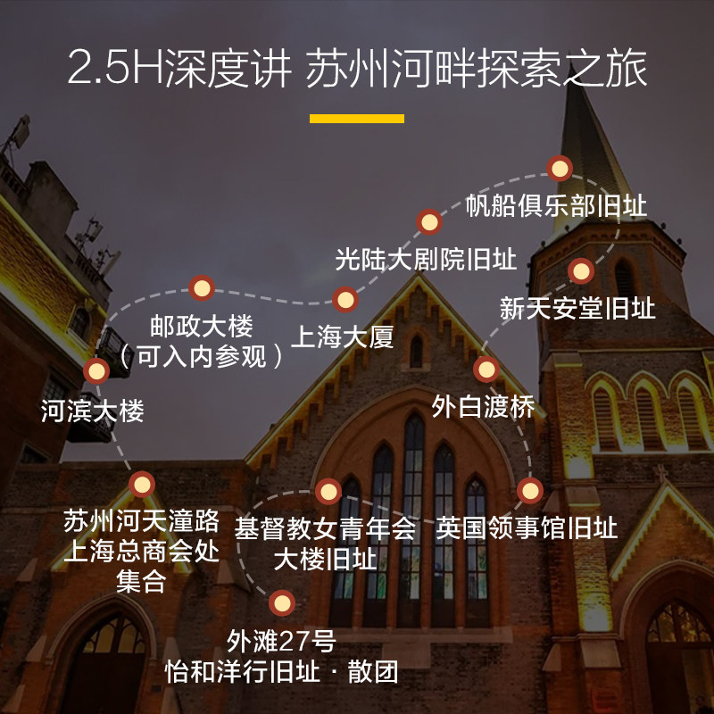 不同于走马观花的常规观光,本产品以苏州河为线索,深入挖掘上海从工业码头到文化长廊的转型历程。差旅人士可在短短2.5小时内,通过人工英文精讲了解诸如阜丰面粉厂、天后宫、河滨大楼等历史古建背后的故事。这种‘微度假’模式特别适合时间有限但追求质感的商务旅客,既能高效获取城市文化信息,又避免长途奔波,真正实现‘短途深度、差旅增值’。
