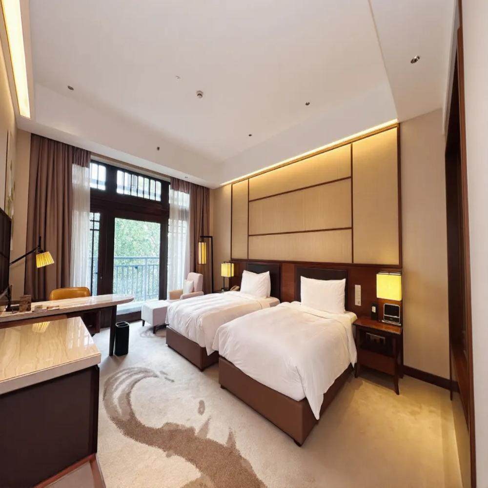 酒店不仅适合度假,更具备完善的商务配套。拥有1300平米无柱韵宴会厅及600平米新中式吴宴会厅,可灵活承接各类会议、团建或小型发布会。4000平米户外草坪亦可用于企业拓展活动。差旅人士可在高效完成工作后,即刻转入休闲状态——恒温泳池、水疗中心、儿童游乐区等设施齐全,满足个人放松或家庭同行的多元需求。