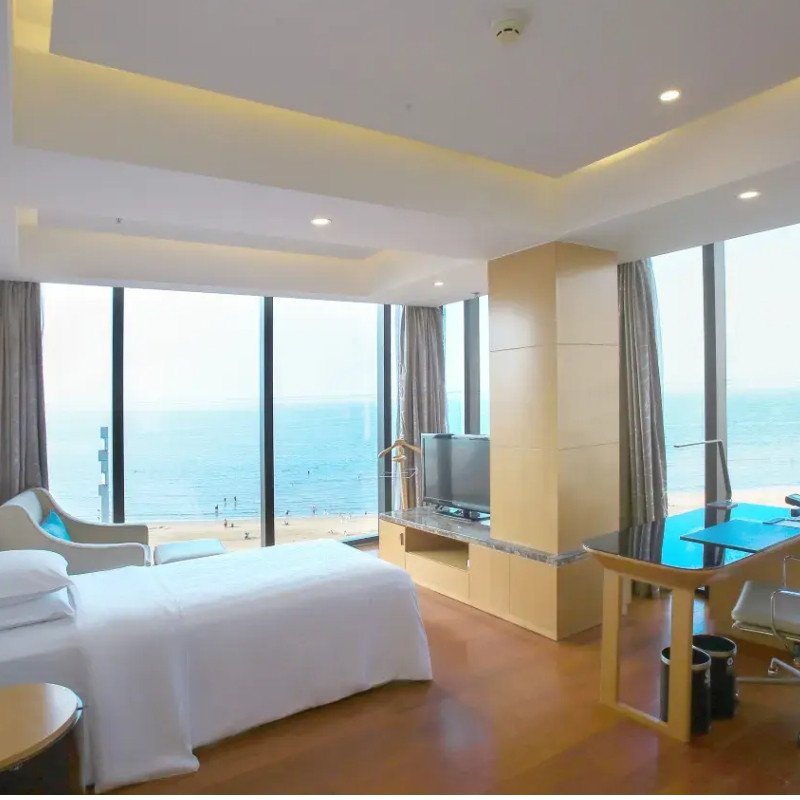 烟台金沙滩喜来登度假酒店提供复式家庭套房或全海景家庭套房,空间宽敞、功能分区明确,特别适合带娃家庭在差旅途中兼顾工作与陪伴。房间直面金沙滩海景,落地窗设计让自然光充分洒入,营造出舒适放松的休憩环境。无论是远程办公还是孩子玩耍,都能互不干扰,真正实现高效差旅与亲子度假的完美融合。