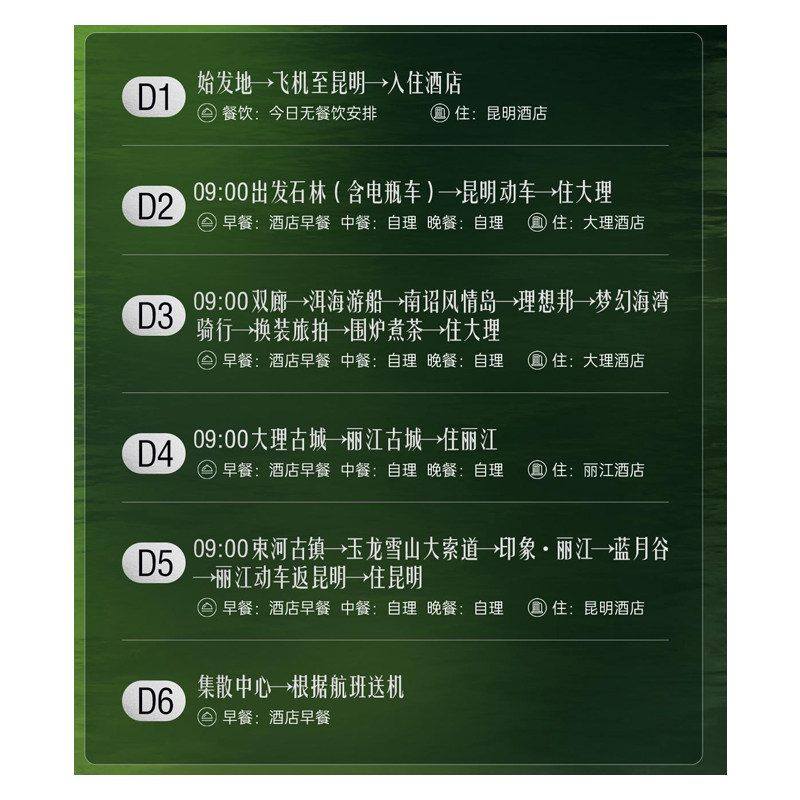 虽然主打‘1人可订’,但行程同样欢迎伴侣或同事结伴同行。若您因公赴昆明、大理等地出差,可顺势邀请家人共度周末,共享玉龙雪山壮景与洱海日落。从海口、揭阳、攀枝花等较远城市出发的旅客,亦可通过此线路实现‘一人差旅,两人度假’的温馨组合,让事业与亲情在彩云之南和谐共融。
