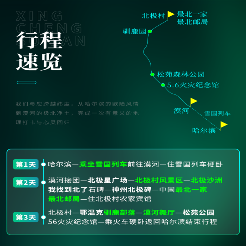 行程覆盖北极村与北红村——中国地理意义上的最北端,可打卡‘最北邮局’‘最北哨所’等标志性地点。对差旅人士而言,这不仅是旅行清单的完成,更是一种象征意义的成就体验。在极寒之地感受祖国辽阔,既能拓宽视野,也能在社交场合中展现独特经历,提升个人魅力。