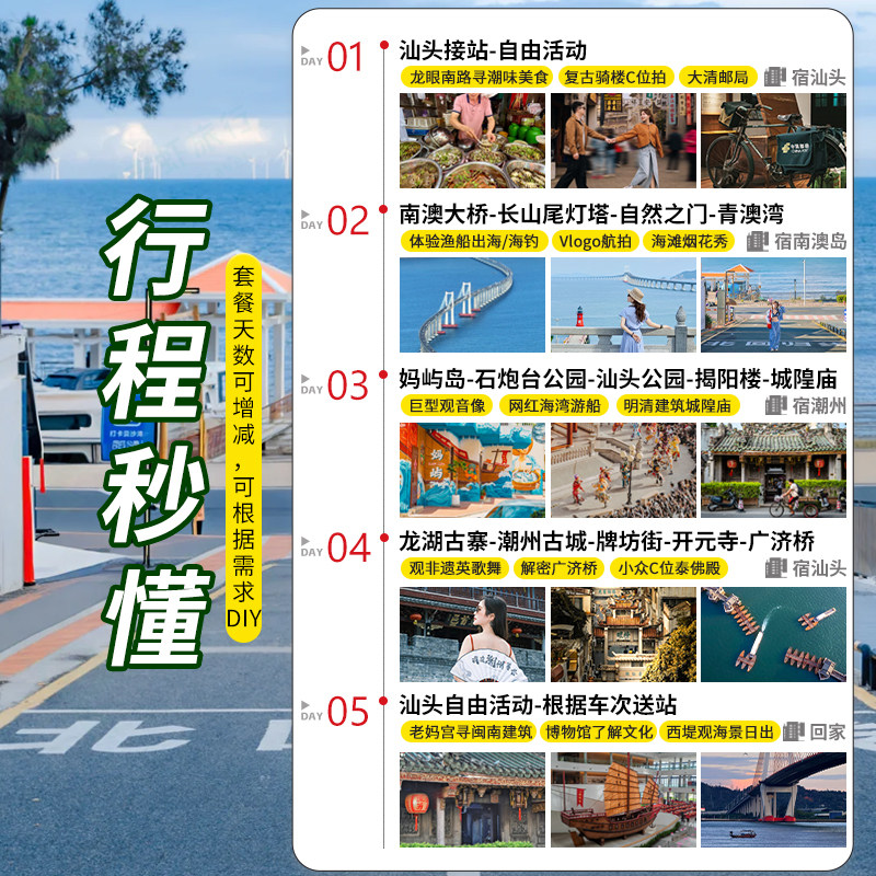 产品设计充分考虑差旅人士时间宝贵的特点,行程安排紧凑而充实,通常可在2-3天内完成,非常适合利用周五下午至周日的短假,或将周末与年假结合进行微度假。即使仅有半天空闲,也可选择性参与部分环节,如南澳岛半日游或市区文化漫步,最大化利用碎片化时间。