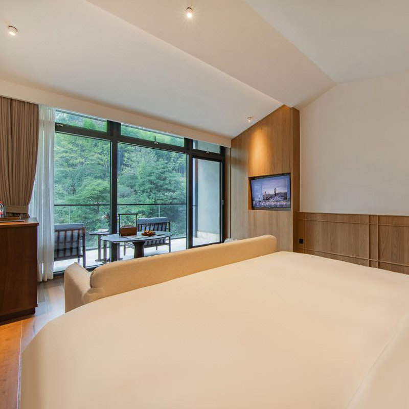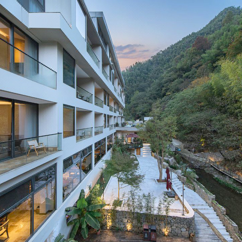 酒店深藏于湖州溪谷秘境,四周林木葱郁,空气负氧离子含量极高,是都市人难得的“天然氧舱”。差旅期间长期处于空调房与会议室,易感疲惫倦怠,而在此呼吸清新空气、聆听溪水潺潺,能有效改善睡眠质量、增强免疫力。这种环境疗愈力,让第二天的工作状态焕然一新,是注重健康效率的商务人士不可错过的休憩选择。