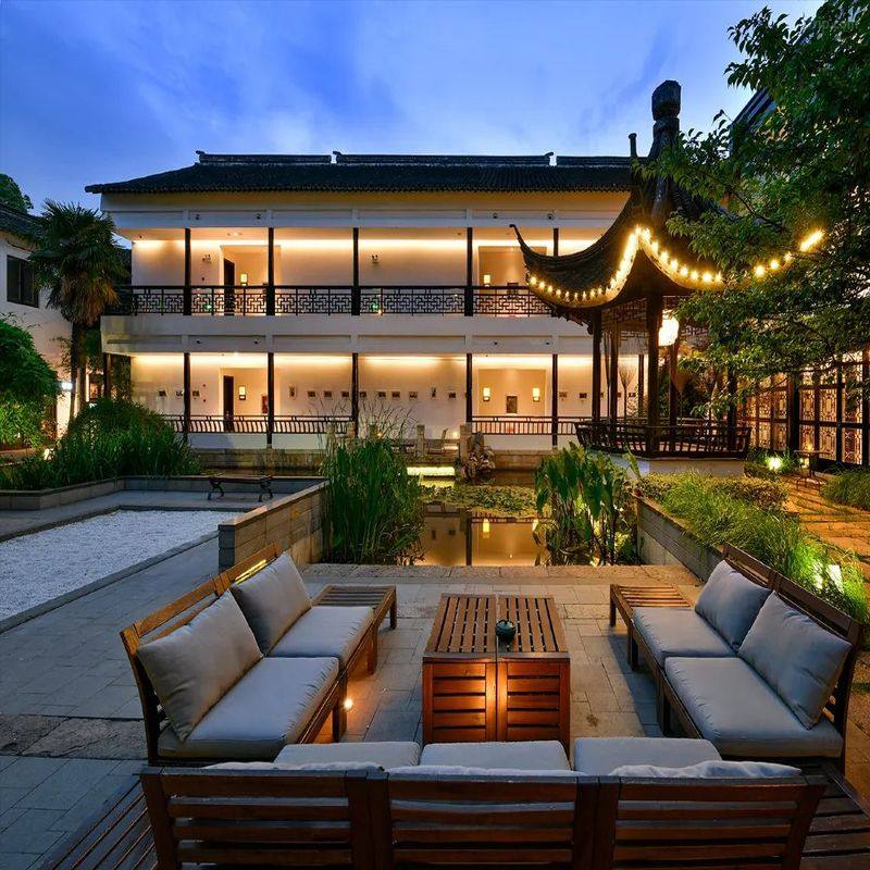 • 酒店位于同里古镇内,由古风园和丽则女学两个部分组成