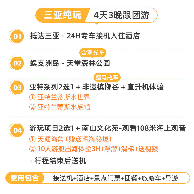 精心设计的4天3晚行程,完美契合周末加两天年假的差旅休假模式。首日抵达即开启游玩,末日返程前仍保留自由活动时间,最大化利用有限假期。路线涵盖蜈支洲岛、亚特兰蒂斯等标志性景点,确保在短时间内收获完整三亚度假体验,让短途差旅也能满载而归。