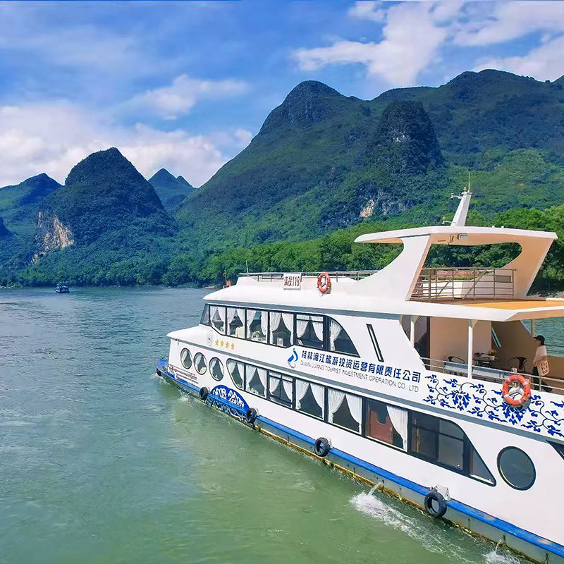 乘坐四星级标准漓江游船,是差旅人士享受高品质休闲的理想选择。游船配备舒适座椅、观景甲板及专业讲解,全程平稳安全,既能高效完成观光打卡,又不失体面与舒适。在繁忙公务之余,于碧水青山间慢下来,感受“舟行碧波上,人在画中游”的诗意,为后续工作注入灵感与能量。