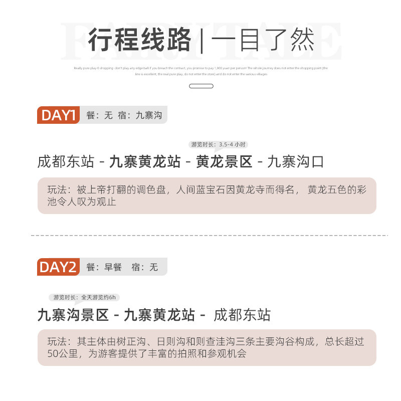 专为时间有限的差旅人群定制,聚焦九寨沟与黄龙两大世界自然遗产地,剔除冗余环节,直击核心景观。翠海、叠瀑、钙华池等标志性景点一网打尽,确保在短暂假期中收获最大视觉震撼与旅行价值,实现“高效度假、深度体验”的差旅新范式。