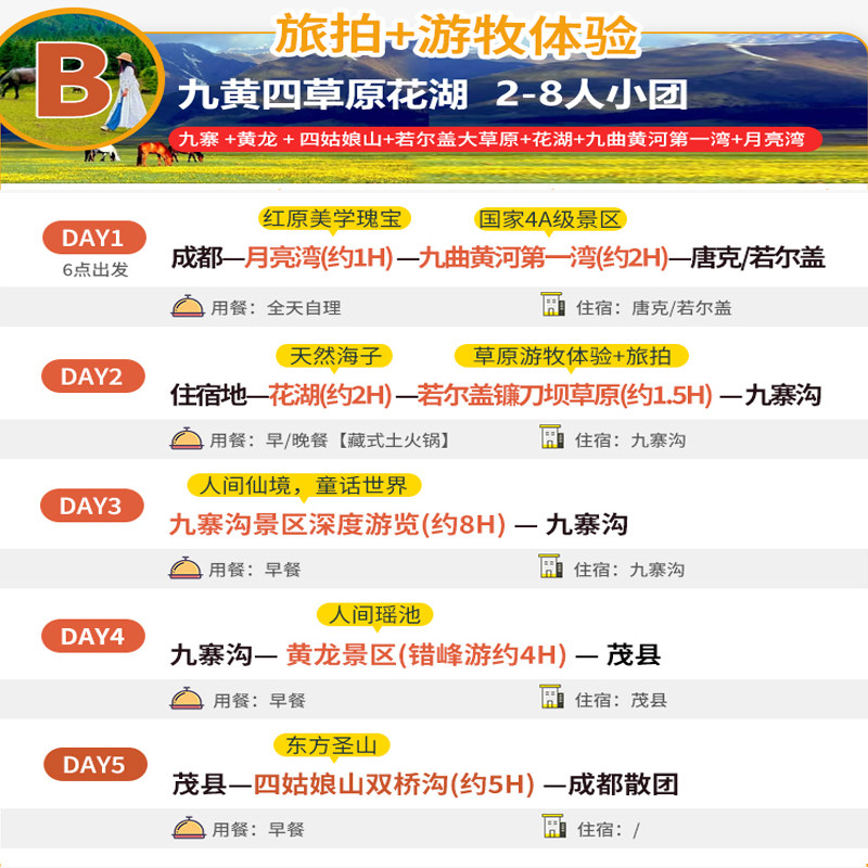 本线路支持1人单独报名参团,无需拼凑人数,极大提升了商务人士或独自出差旅行者的出行灵活性。无论您是临时调派、项目结束后的放松之旅,还是差旅间隙的短途度假,都能快速锁定席位,省去等待与协调时间。8人精品小团配置确保服务品质,兼顾私密性与社交体验,让您的差旅之余也能轻松享受高品质川西风光。