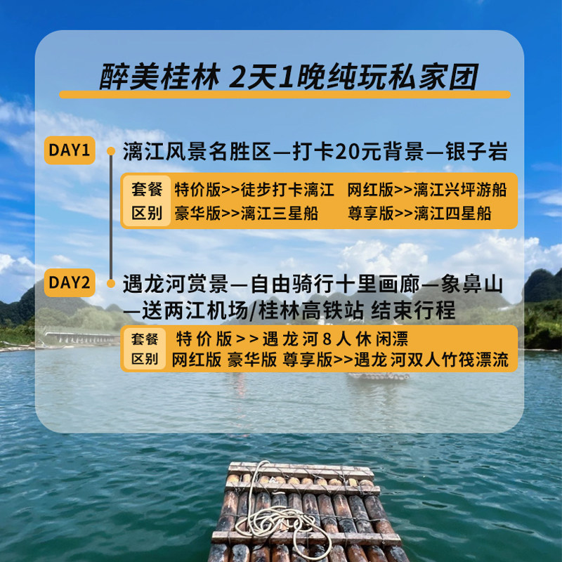 行程起点与终点均设在桂林市区,特别适合在当地出差或会议结束后的旅客无缝衔接度假。无需额外交通中转,节省宝贵时间与体力。包车服务直接从酒店接驳,让差旅人士在完成工作任务后,迅速切换至休闲模式,享受阳朔山水的宁静与惬意,最大化利用短暂停留时间。