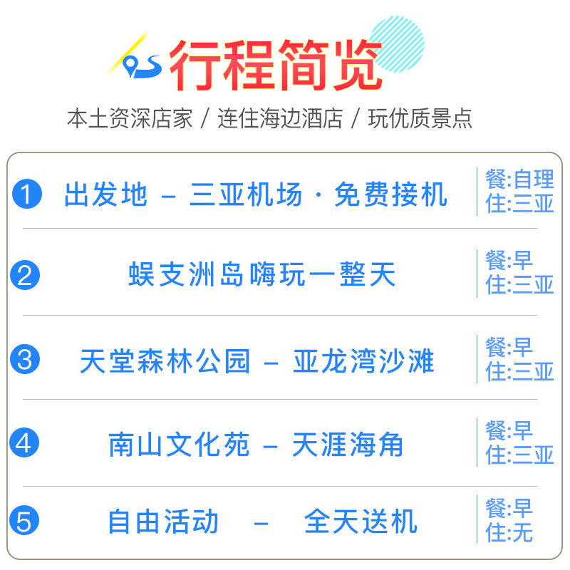 产品已包含从12个主要出发城市至三亚的往返机票,省去您自行比价、订票的繁琐流程。对于企业差旅报销或个人预算管理而言,费用透明可控,避免额外支出。同时,航班时间多选择早晚班次,便于衔接工作日程,最大化利用假期天数,让差旅度假更省心、更经济。