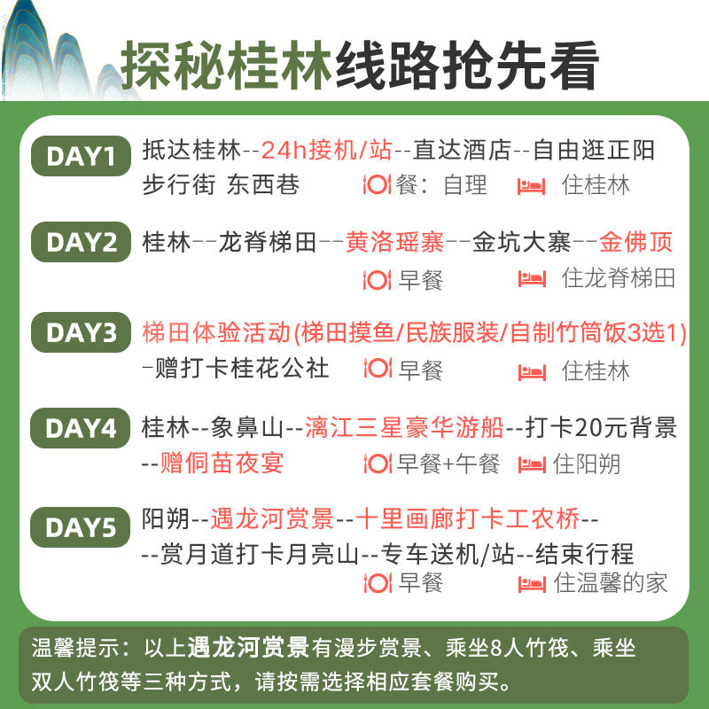 ![[15人团]桂林旅游阳朔漓江三星游船遇龙河竹筏龙脊梯田纯玩五日游](https://gw.alicdn.com/imgextra/i1/6000000005509/O1CN017qRMAg1qZB2DcbEH0_!!6000000005509-0-itemdesc.jpg)