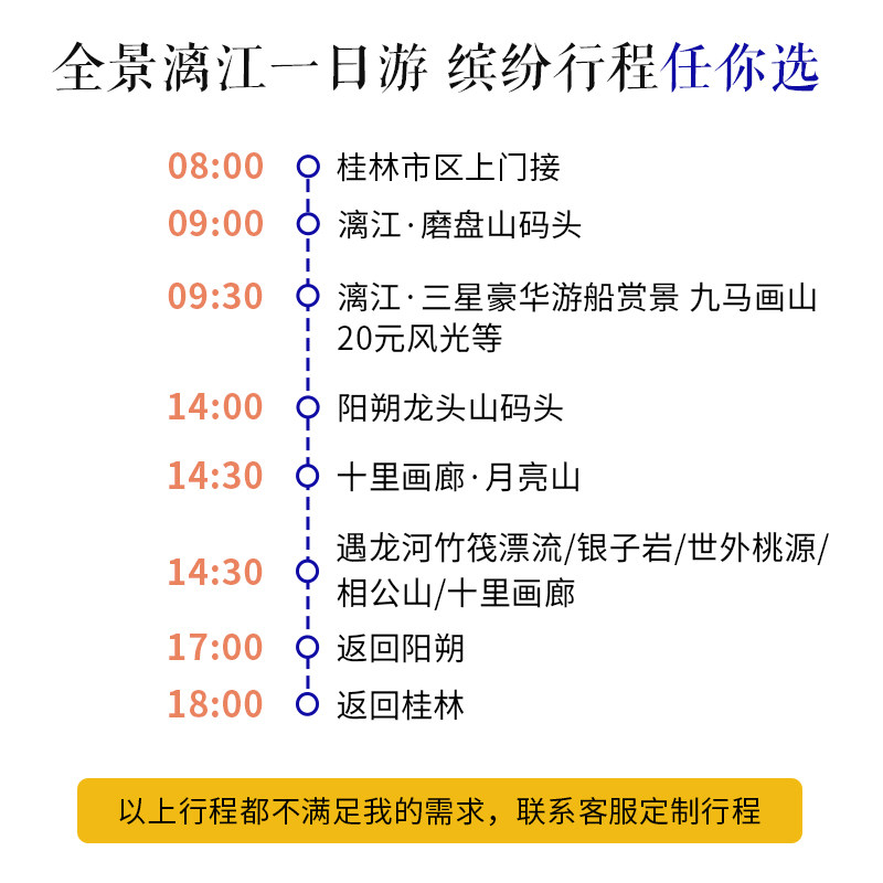 行程起点设于桂林市区,紧邻高铁站、机场及主要商务酒店,提供上门接送服务,极大降低差旅人士转乘负担。无论您刚下飞机还是结束会议,均可快速接入度假流程,避免因交通延误影响整体安排,真正实现‘落地即度假’的高效差旅新模式。