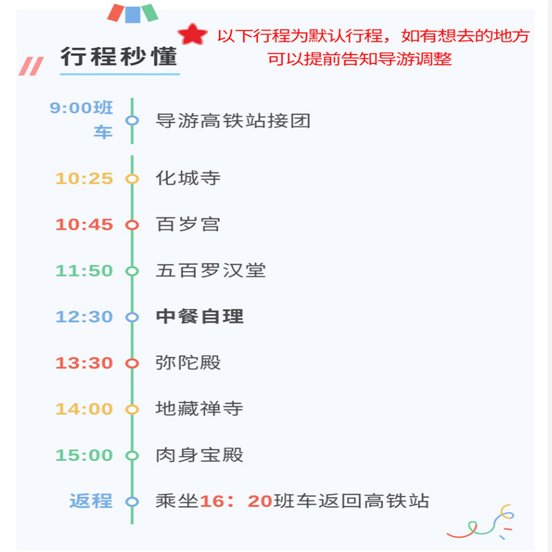 本产品专为差旅人士设计,提供池州高铁站至九华山景区的无缝接送服务,省去打车、换乘等繁琐环节。无论您是结束会议后想短暂放松,还是清晨抵达后即刻开启心灵之旅,全程交通已包含在内,最大化节省时间成本,让您的商务出行也能轻松融入人文体验,实现高效与宁静的完美平衡。
