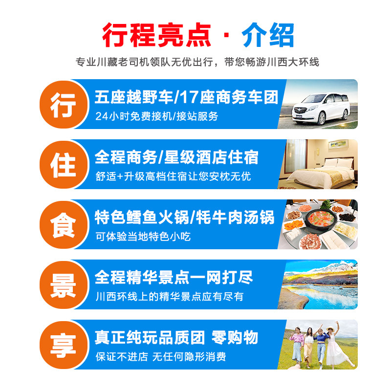 本线路支持1人独立报名参团,无需等待拼团或担心人数不足而取消行程,极大提升了商务人士及自由行旅客的差旅灵活性。无论是临时出差后的短途放松,还是独自探索川西秘境,都能即刻启程。小团模式确保服务品质与行程节奏,兼顾高效与深度体验,是现代差旅者理想的选择。