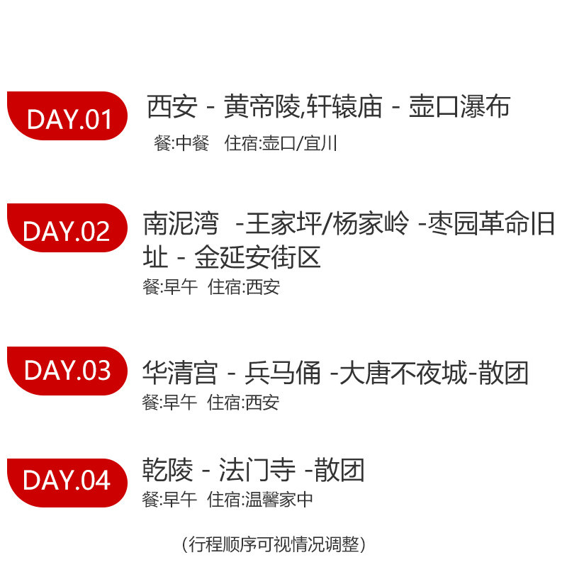 无论您是独自出差还是临时起意度假,本产品支持1人成行,无需拼团等待,极大提升差旅自由度。行程涵盖兵马俑、华清宫、乾陵、法门寺及壶口瀑布等标志性景点,满足个人对历史、宗教与自然奇观的多元兴趣。灵活的预订机制让差旅间隙也能轻松开启一场沉浸式文化度假。