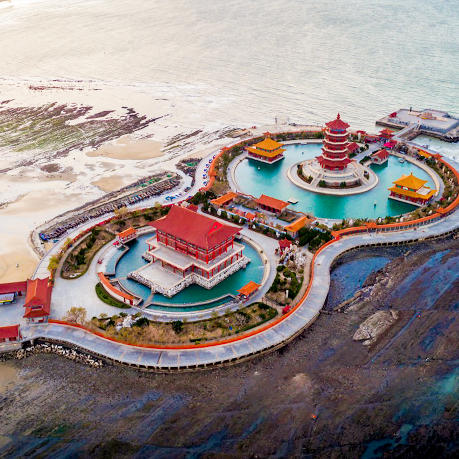 八仙过海景区依海而建,融合了仿唐宋建筑群与壮阔黄海风光,一步一景,极具视觉冲击力。对于长期处于高强度工作状态的差旅人士而言,漫步于仙气缭绕的廊桥亭阁间,远眺碧海蓝天,能有效舒缓压力、恢复精力,为后续工作注入新活力。