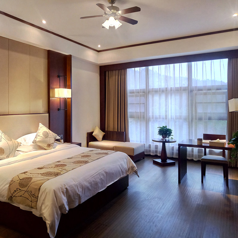汤里酒店提供中式古典风格的木屋与别墅房型,不仅具备高私密性,更配备完善设施,部分房型设有麻将房,亦可临时改造为小型洽谈区。对于需在差旅途中处理紧急事务的商务人士而言,这里既是休憩之所,也是安静高效的临时办公室。置身于96%森林覆盖率的环境中,清新空气与鸟鸣相伴,有助于提升专注力与创造力,让差旅效率倍增。