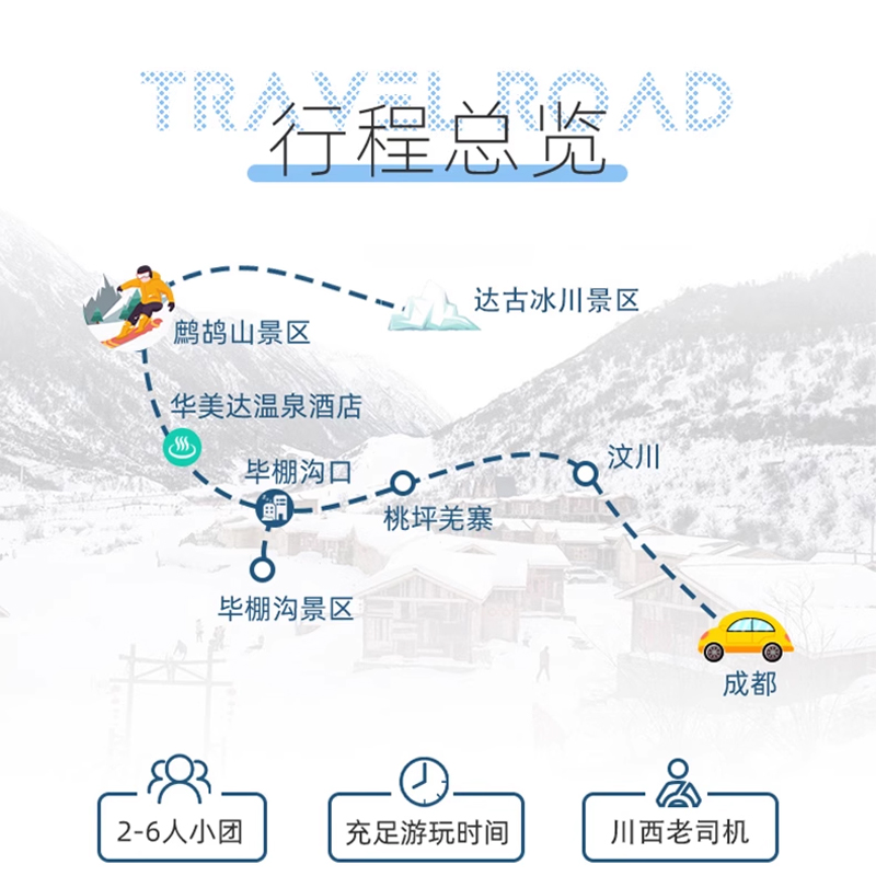 本产品以“川西冰川秘境”为主题,串联四姑娘山、毕棚沟、达古冰川三大标志性景点,形成一条逻辑清晰、景观递进的精品路线。差旅人士无需自行规划复杂交通与景点衔接,即可高效打卡川西最具代表性的自然奇观。主题化设计不仅提升旅行的专业感,也确保在有限时间内获得最大化的视觉震撼与心灵触动。