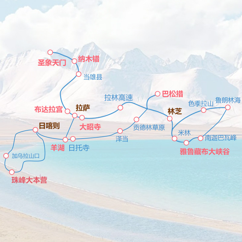 西藏旅游团 2-8人纯玩航空座椅环线拉萨林芝来古冰川7天6晚跟团游