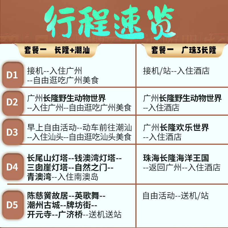 采用全程跟团模式,提供专业导游、统一交通与住宿安排,极大降低差旅人士在陌生城市独自出行的风险与不确定性。尤其适合首次到访广东地区的商务旅客,无需操心路线规划与语言沟通,专注工作与放松,享受安全、省心、高品质的度假体验。