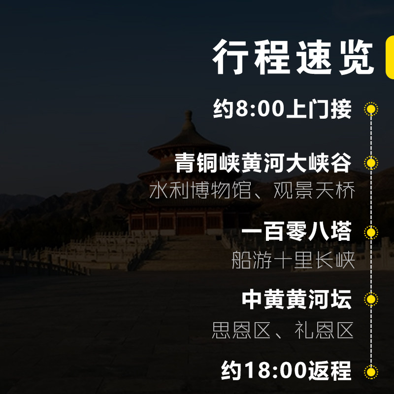 针对商务差旅人士时间紧张、行程多变的特点,本线路支持1人即可预订,无需拼团等待,极大提升了出行灵活性。无论您是临时出差至银川,还是在会议间隙希望快速体验当地文化,都能即订即走,省去协调多人时间的繁琐,让差旅中的休闲时光更加高效便捷。