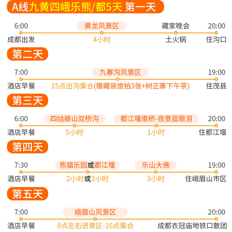 本线路专为差旅人士设计,支持1人单独预订,无需拼团等待,极大提升出行灵活性。无论您是商务出差间隙想短暂放松,还是独自开启一段心灵之旅,都能即刻出发。行程涵盖九寨沟、毕棚沟、四姑娘山等川西精华景点,5日时间紧凑高效,兼顾观光与休憩,特别适合时间有限但追求深度体验的差旅人群。