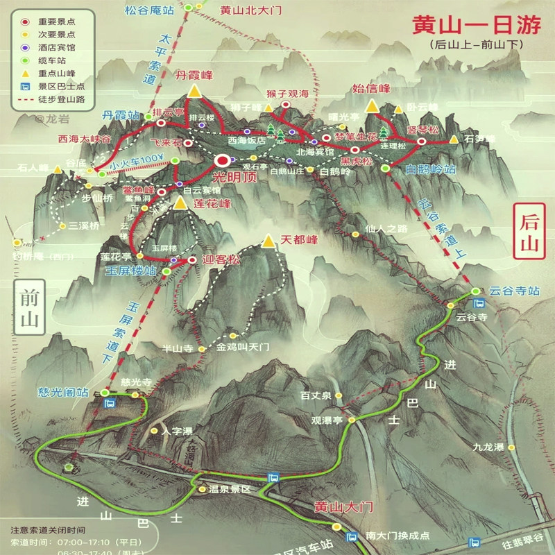 专为商务差旅人士设计,本行程提供从黄山主城区北站至缆车站的无缝接送服务,大幅压缩交通耗时。无需辗转换乘,下车即上山,最大化利用有限的差旅间隙。无论是会议间隙的一日放松,还是转车途中的短暂停留,都能高效融入世界自然与文化双遗产地——黄山的壮丽风光之中,让差旅不再只是奔波,更添一份诗意与从容。