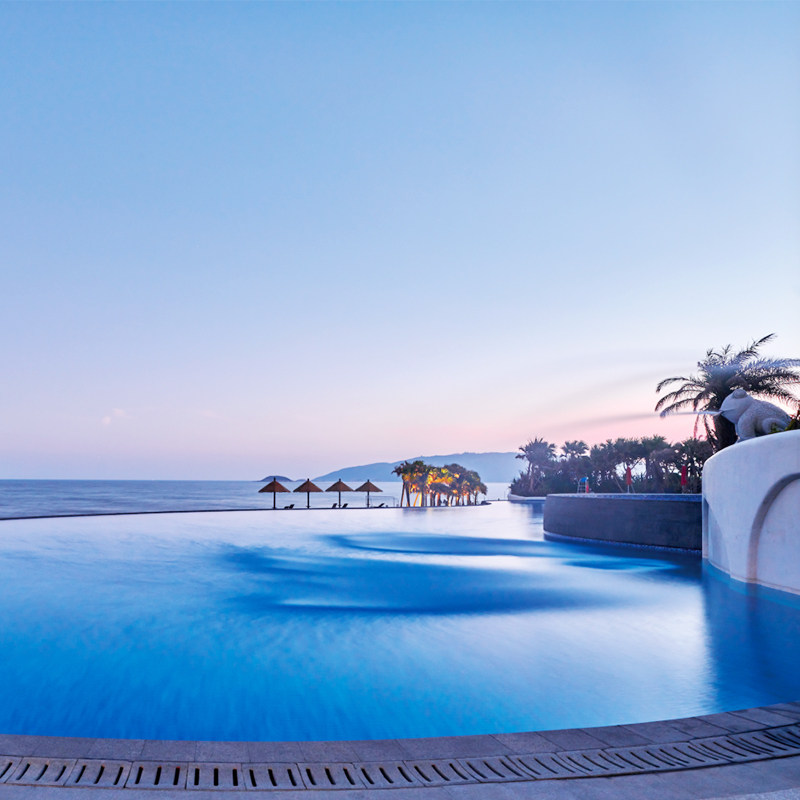 结束一天紧张的商务行程后,不妨在惠州双月湾檀悦都喜天丽度假酒店的标志性空中无边泳池放松身心。泳池悬于高处,直面浩瀚南海,日落时分尤为壮美。这种将自然景观与高端设施结合的设计,不仅满足差旅人士对效率与品质的双重需求,更提供一处远离喧嚣、快速恢复精力的理想空间,让短暂差旅也能拥有度假级体验。
