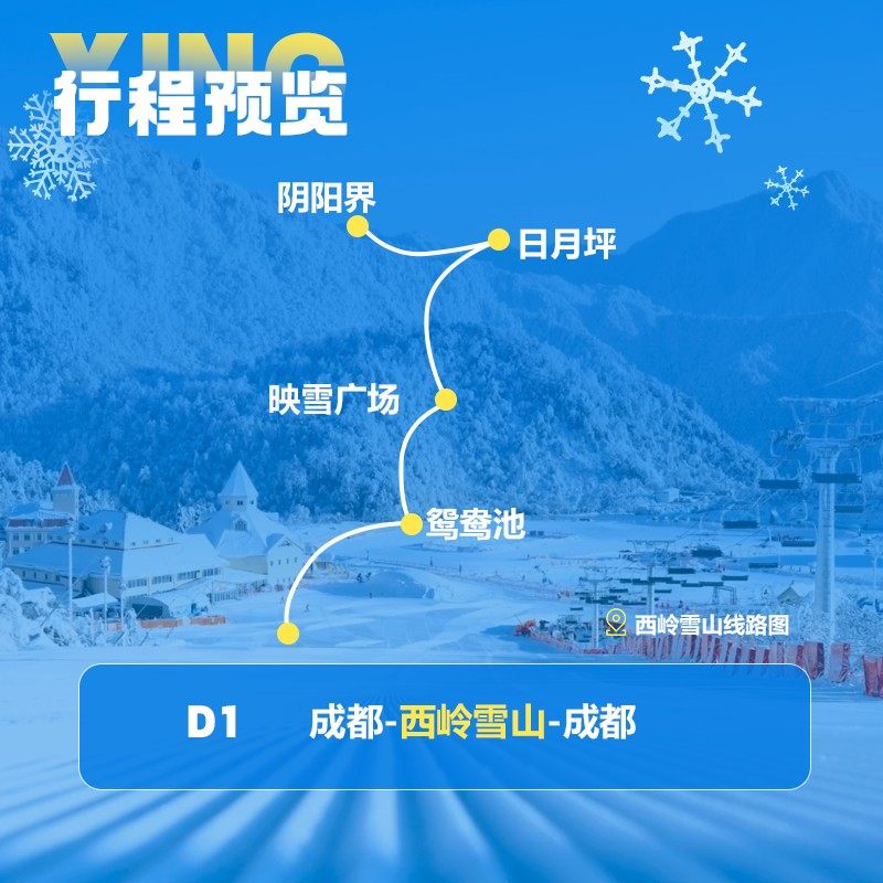 虽处成都近郊,西岭雪山却拥有媲美玉龙雪山的雪域景观。本行程以“雪山秘境”为主题,融合自然奇观与休闲活动,打造沉浸式微度假体验。对差旅者而言,无需远赴云南,即可在周末或工作间隙感受高海拔雪域的纯净与宁静,实现说走就走的心灵出逃。