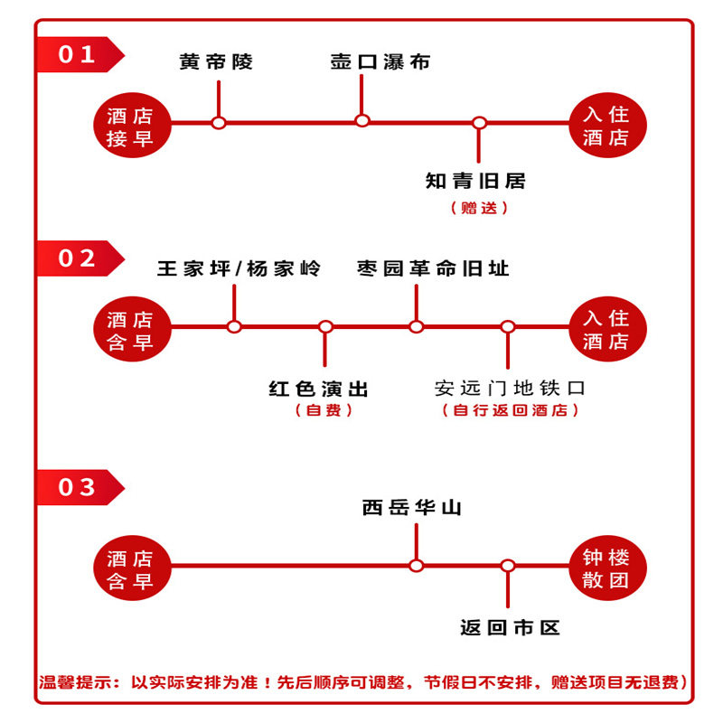 行程覆盖西安、渭南(华山所在地)、延安三大城市,依托陕西省内发达交通网络,实现景点间高效接驳。差旅人士可在不同城市会议或业务之间,轻松嵌入旅游模块,实现工作与休闲的无缝切换,提升整体出行效率。