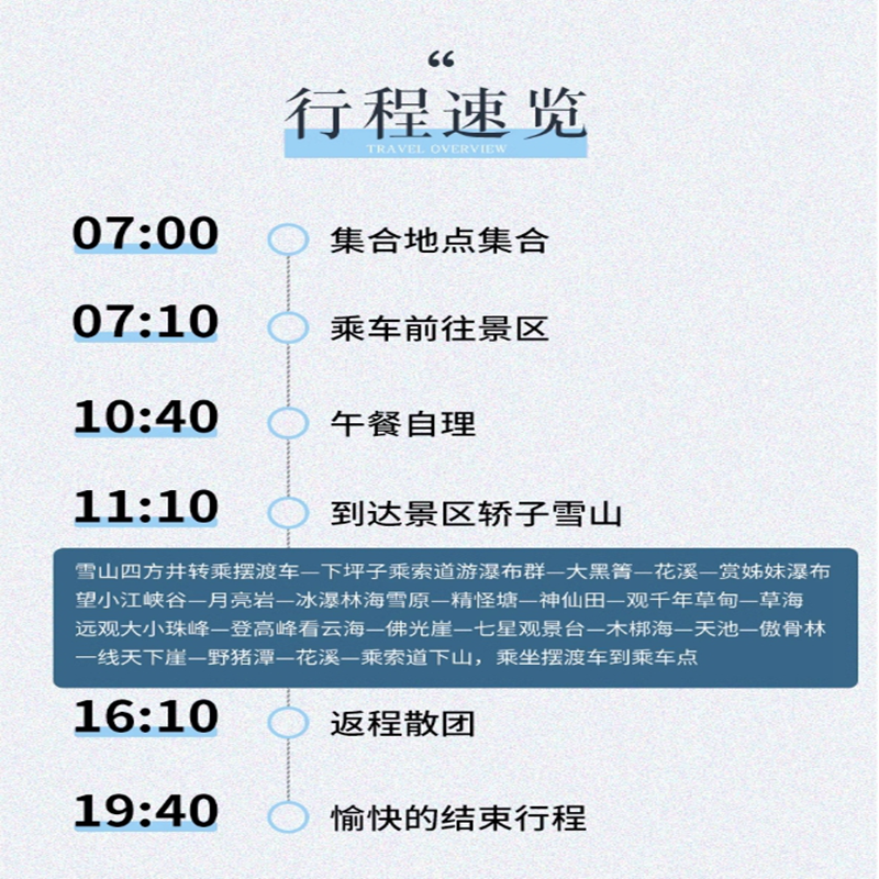 差旅出行最怕隐形消费和临时加价。本产品明确包含门票、大索道、景区摆渡车等全部必要费用,真正做到“一价全含”。商务人士无需再为交通接驳、门票排队等问题分心,专注享受旅程,提升差旅体验品质与效率。