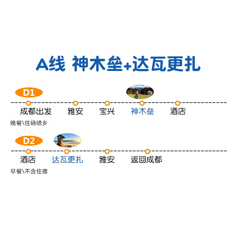 行程起点与终点均覆盖成都,完美契合从成都出发或返程的差旅人士需求。无需绕路,利用周末或工作间隙即可开启一场川西自然之旅。达瓦更扎与神木垒两大核心景点串联,沿途森林氧吧、高山草甸尽收眼底,让短暂差旅也能收获身心双重疗愈,高效利用碎片化时间。