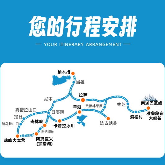 从拉萨启程,经宗教圣地日喀则、藏文化发源地山南,至‘西藏江南’林芝,六日行程科学规划高原海拔梯度,有效缓解高反风险。沿途涵盖珠峰大本营、羊卓雍措、奇林峡等世界级景观,实现自然奇观、宗教文化与生态风光的全维度体验,最大化差旅时间价值。