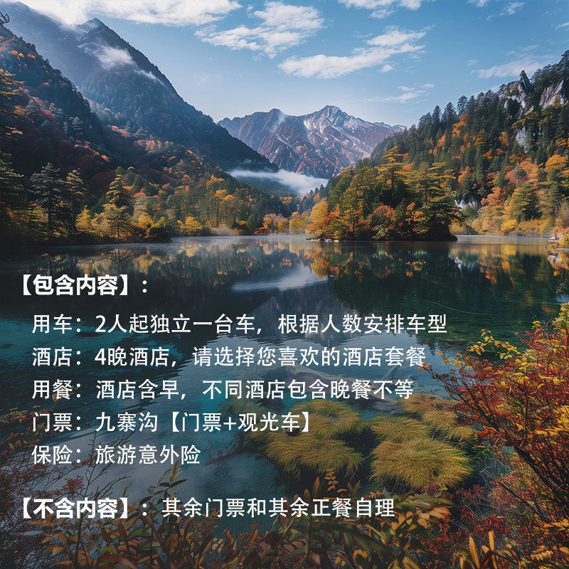 成都到九寨沟黄龙旅游希尔顿洲际私家小团2-6人包车游纯玩5天4晚