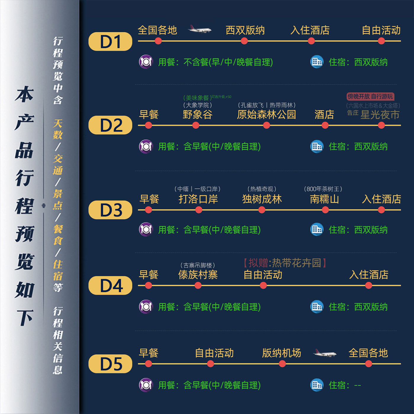 本行程采用“1单1团”独立私家团模式,专为注重效率与私密性的差旅人士设计。无需拼团等待,行程节奏由您掌控,既适合商务出行后的深度放松,也便于安排临时会议或调整日程。专属导游与车辆全程服务,确保差旅衔接顺畅,让您在西双版纳的热带风情中高效切换工作与度假状态。