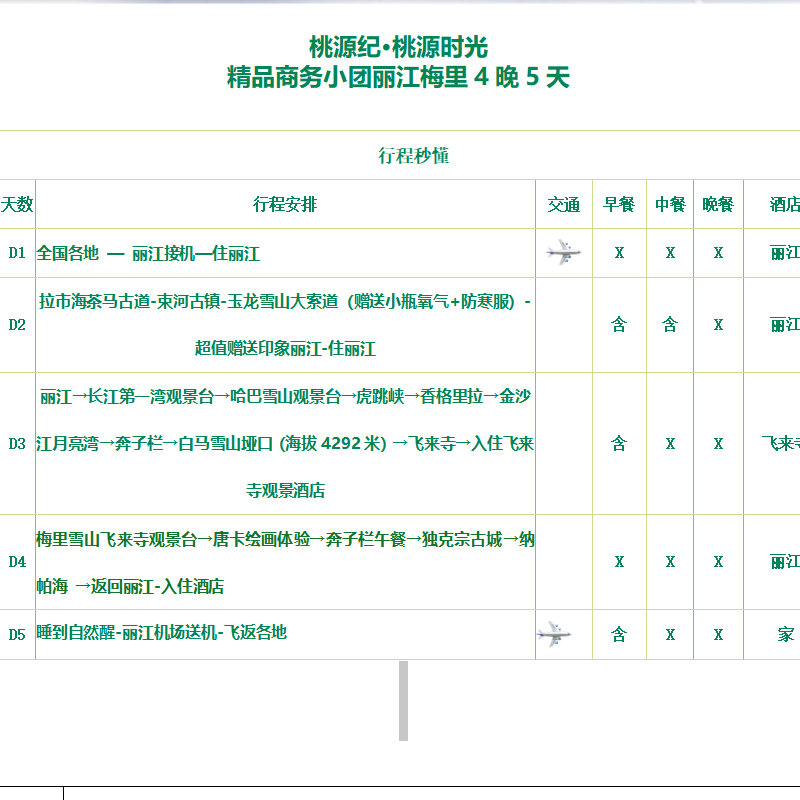 本行程支持从北京、上海、广州、深圳等全国28个主要城市直飞丽江,极大节省差旅人士中转时间。无论您刚结束一场紧张的会议,还是需要在项目间隙放松身心,均可一键预订含往返机票的5天4晚精品小团。航班资源丰富,灵活匹配您的出差日程,真正实现‘上午开完会,下午看雪山’的高效差旅度假模式。