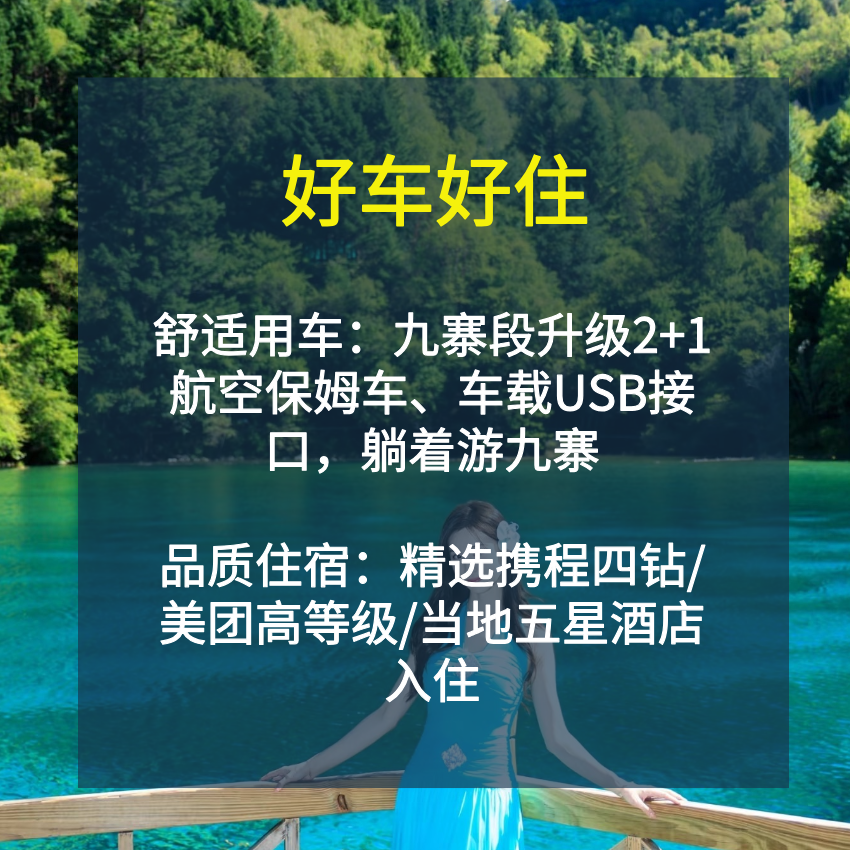 虽定位差旅友好,但本产品坚持‘奢游’标准:精选舒适车型、优质住宿、专属导游及优先入园通道,确保您在高效行程中不失尊享感。无论是九寨沟的碧水蓝天,还是熊猫基地的萌趣互动,每一环节都经过精心打磨。让差旅不再将就,而是成为值得期待的高品质生活片段。