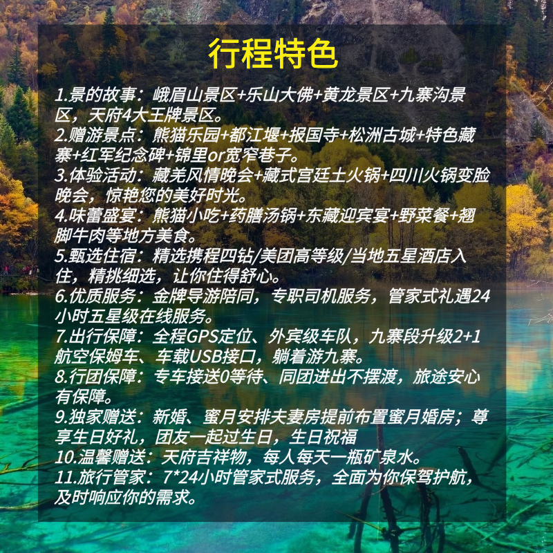 【奢游四川全景】成都九寨沟黄龙乐山大佛峨眉山都江堰熊猫园8日【奢游四川全景】成都九寨沟黄龙乐山大佛峨眉山都江堰熊猫园8日【奢游四川全景】成都九寨沟黄龙乐山大佛峨眉山都江堰熊猫园8日【奢游四川全景】成都九寨沟黄龙乐山大佛峨眉山都江堰熊猫园8日